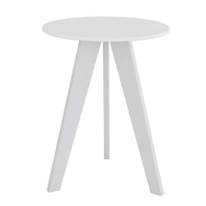 Mesa de cabeceira Kakau Retrô Móveis Peroba Branco Brilho. Mesinha Kakau com estilo Retrô, produzida em 100% MDF. Produto versátil para utilização em vários cômodos da casa, no quarto do bebê é muito útil como mesa de apoio. Com altura de 69,7cm e 54cm de diâmetro. Acabamento em pintura U.V. e bordas com acabamento laqueado. Possui 3 pés em MDF com 68,5cm de altura. Ean: 7909903178409