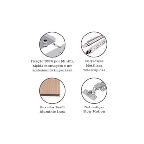 A Mesa de Cabeceira Lado Direito Prime foi desenvolvido se adequando a vários espaços, de grandes a pequenos. Possui 236 cm de altura oferece divisórias para atender diversas necessidades e profundidade de 45cm. Produzido em MDP de 15mm, dobradiças Slowmotin reforçadas em 35mm, corrediças telescópicas, a montagem é inteira por minifix que proporciona um acabamento impecável e fundos embutidos com perfil usinado para melhor acabamento e maior resistência.