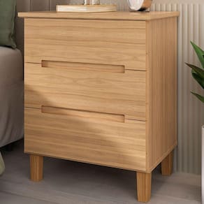 O(a) Mesa de Cabeceira Logan 3 Gavetas Olmo - Mambel é produzido em MDF na escala de brilho Fosco, e possui um grau de dificuldade de montagem: Médio.