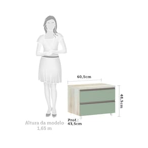 Características: Matéria Prima: MDP 15mm Corpo/Caixaria: MDP Legno Crema PF. Frontais: MDP BP. Estrutura e prateleira: FF Prateleiras: Não Portas: Não Gavetas: 2 Corrediças: Sim, telescópicas Dobradiças: Não Puxadores: Perfil alumínio Cabideiro: Não Montagem com Minifix, Parafusos e cavilhas.