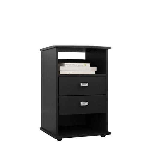 Seu design inteligente combina duas gavetas espaçosas, equipadas com corrediças metálicas que garantem abertura suave e segura, além de um nicho aberto, ideal para deixar livros, objetos decorativos ou aquele item que você gosta de ter sempre à mão.