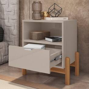 A Mesa de cabeceira com pés de madeira maciça,tornando-o ainda mais resistente. Acabamento de pintura UV. ( Semi-Fosco ) Frente de gaveta usinada.