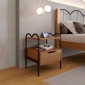 mesa de cabeceira oasis 1 gv preta e nature - Marrom Escuro