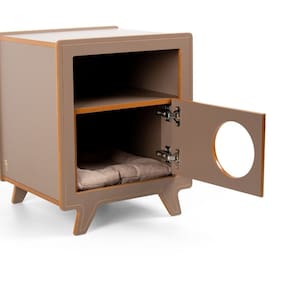 Para o seu gato, um cantinho confortável e sossegado para descansar depois de (ou durante) um dia agitado. Para você, uma mesa de cabeceira com design e estilo autêntico.