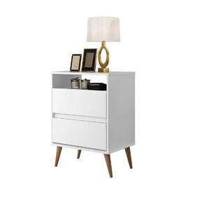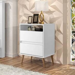 mesa de cabeceira paris 2 gavetas puxador cava - Branco