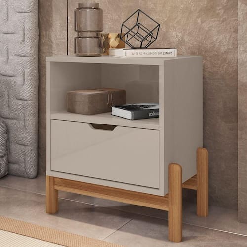 Estruturada em MDP de 25mm e 15mm, a Mesa de Cabeceira é ideal para deixar seu ambiente aconchegante e estiloso, com um design moderno e muito funcional, contém uma gaveta e um nicho com muito espaço para guardar seus pertences.