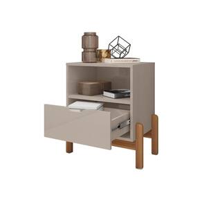 A Mesa de cabeceira com pés de madeira maciça,tornando-o ainda mais resistente. Acabamento de pintura UV. ( Semi-Fosco ) Frente de gaveta usinada.