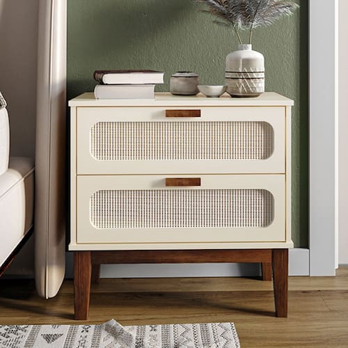 Tipo: Mesa de Cabeceira Modelo: Santorini Cor: Off White Tela Indiana Sintética