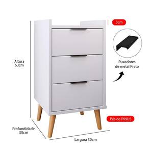Mesa Cabeceira Pés Palito Toni 3 Gavetas Cor Branco