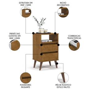 Características do Produto Material da estrutura: MDP 15mm. Acabamento: Pintura UV Escala de Brilho: Semifosco. Peso Suportado: 8 kg distribuídos. Tipo de Puxador: Passante. Quantidade de Gavetas: 2 Gavetas. Tipo de Corrediças: Telescópicas. Quantidade de Nichos: 1 Nicho. Material dos Pés: Plástico. Diferenciais: - Design moderno. - Pés de plástico estilo palito com 17cm. - Frente das gavetas em MDP 12mm. - Puxadores passante para um design clean. Sistema de Montagem: Parafusos/Cavilhas/Minifix. Manual de Montagem: Sim. Complexidade da Montagem: Baixa. Volumes: 1 Volume. Conteúdo da Embalagem: 1 Mesa de Cabeceira. Garantia do Fabricante: 90 dias contra defeito de fabricação. Montagem: Recomendamos que seja feita por um profissional. Recomendação de Limpeza: Utilize pano levemente úmido.