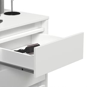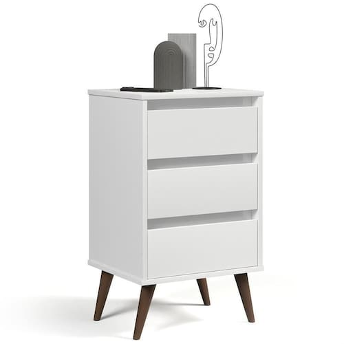 O design moderno e clean dessa mesa de cabeceira permite que ela se adapte facilmente a qualquer estilo de decoração, seja ele clássico, contemporâneo ou até mesmo escandinavo. Além disso os pés retrô que adicionam um toque de sofisticação ao seu ambiente, ao passo que as três gavetas espaçosas proporcionam muito espaço para armazenar seus itens pessoais, como livros, carregadores, óculos e muito mais. Mais que ser funcional, essa peça também é extremamente versátil, pois ela pode ser aproveitada não apenas como uma mesa de cabeceira, mas também como um móvel auxiliar em outros cômodos da sua casa, como a sala de estar ou até mesmo o escritório.