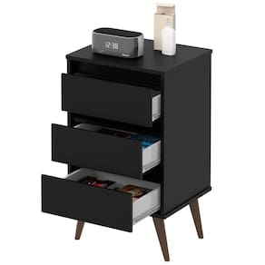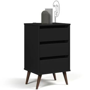 Que tal adicionar um toque de charme vintage ao seu quarto com a Mesa de Cabeceira Pés Retrô 3 Gavetas 43cm Wood Preto, da EJ Móveis? Esse móvel elegante e funcional é perfeito para complementar qualquer estilo de decoração.
