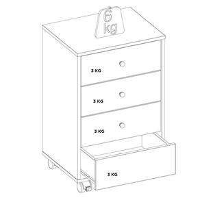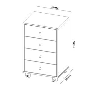 ESPECIFICAÇÕES: • Estrutura em MDP • 4 Gavetas • Corrediças metálicas • Puxadores de plástico ABS • 4 Rodízios em PVC