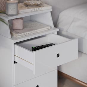Esta mesa de cabeceira é perfeita para adicionar um toque elegante ao seu quarto. Com três gavetas espaçosas, você terá muito espaço para guardar seus pertences pessoais. Com seu design moderno e funcionalidade prática, esta mesa de cabeceira é uma adição indispensável ao seu espaço de dormir.