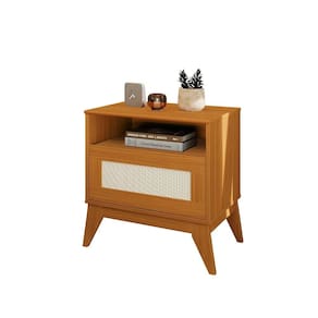 Com uma estrutura em MDP e tampo em MDF, esta mesa de cabeceira combina durabilidade e estilo em um único móvel. Possui uma gaveta com acabamento em tela Rathan sintético e moldura, equipada com corrediças telescópicas para facilitar o acesso aos seus pertences. Seus 4 pés em MDF garantem estabilidade e sofisticação ao conjunto.