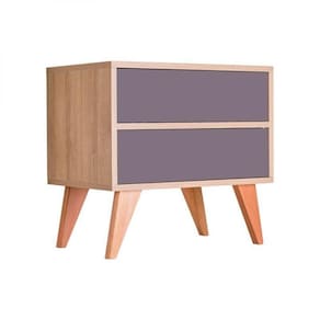 Mesa de Cabeceira Retrô Modelo Bréscia na cor Carvalho Treviso (Madeira Clara) e portas Cinza Claro traz organização com estilo para o seu quarto. Possui lindos pés torneados em diagonal.