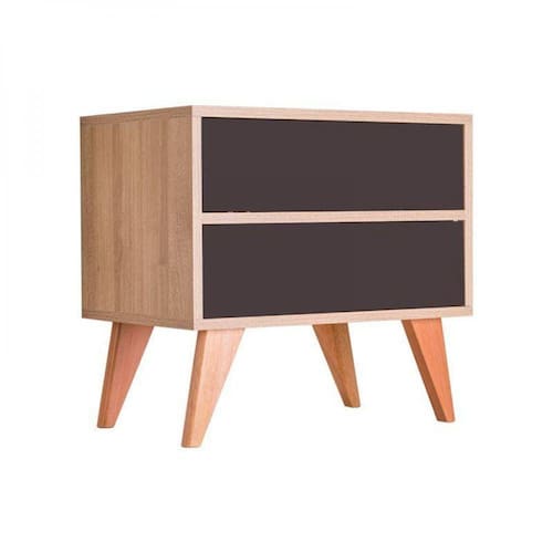 Mesa de Cabeceira Retrô Modelo Bréscia na cor Carvalho Treviso (Madeira Clara) e portas Grafite traz organização com estilo para o seu quarto. Possui lindos pés torneados em diagonal.