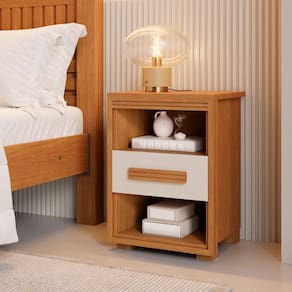 Mesa de Cabeceira Cairo em MDF com Gaveta e Duas Prateleiras - Cor Nature com Off White, Pés em Madeira Maciça, Corrediças Telescópicas e Puxador em MDF Descrição do Produto: Transforme seu quarto com a sofisticação e funcionalidade da Mesa de Cabeceira Cairo. Com uma elegante combinação de cores nature e off white, esta mesa de cabeceira é fabricada em MDF de alta qualidade, sendo a escolha perfeita para quem deseja unir estilo e praticidade. Características Principais: Material de Alta Qualidade: Fabricada em MDF, garante durabilidade e resistência, proporcionando um uso prolongado. Design Moderno: A combinação de cores nature com off white confere um visual contemporâneo e sofisticado, que se adapta facilmente a diferentes estilos de decoração. Pés em Madeira Maciça: Pés robustos em madeira maciça proporcionam estabilidade e um charme natural ao móvel. Corrediças Telescópicas: A gaveta equipada com corrediças telescópicas assegura uma abertura suave e silenciosa, facilitando o acesso aos seus pertences. Puxador em MDF: Puxador em MDF que complementa o design, adicionando um toque de elegância e funcionalidade. Espaço de Armazenamento: Uma gaveta espaçosa e duas prateleiras abertas oferecem amplo espaço para organizar livros, revistas e objetos decorativos. Dimensões: Altura: 62,5 cm Largura: 42,5 cm Profundidade: 38 cm Vantagens: Organização e Praticidade: Mantenha seu espaço organizado com a gaveta de fácil acesso e prateleiras adicionais que oferecem amplo espaço para armazenamento. Montagem Fácil: Inclui manual de instruções detalhado para uma montagem rápida e simples. Sustentabilidade: Produzida com materiais ecologicamente corretos, contribuindo para a preservação do meio ambiente. A Mesa de Cabeceira Cairo em MDF com acabamento em cores nature e off white é a escolha ideal para adicionar estilo e funcionalidade ao seu quarto. Com pés em madeira maciça, corrediças telescópicas e puxador em MDF, esta peça oferece um toque sofisticado e prático. Adquira já a sua e transforme seu espaço com elegância e organização! OBS: As imagens são meramente ilustrativas, podendo ter variação na cor de acordo com tela ou monitor de cada cliente. Os Objetos que compõem a imagem ambientada não acompanham o móvel! Recomendamos que a montagem seja feita por um profissional! A empresa não oferece esse serviço, ele é de total responsabilidade do cliente. PRODUTO VENDIDO INDIVIDUAL.