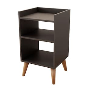 Mesa de Cabeceira Retrô com Pés Palito em Madeira Maciça Prateleiras e Borda Superior Preto