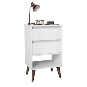 Esta mesa de cabeceira combina o design moderno com pés retrô,o que faz com que ela se adeque a um grande leque de estilos de quartos