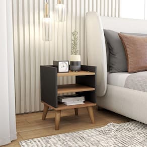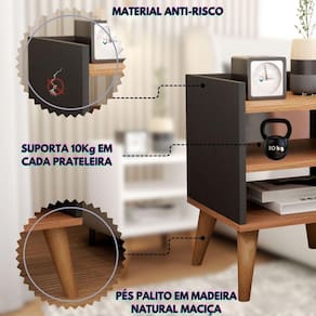 * Embora o produto acompanhe o manual de montagem e seja bem simples, verifique a complexidade antes de decidir montá-lo s Acabamento da Prateleira: BP Acabamento dos Pés: Verniz Altura dos Pés: 17 cm Ambiente Principal: Quarto Complexidade da Montagem: Baixa: pode ser montado por uma pessoa sozinha Cor: Preto + Freió Cor do Produto: Preto + Freió Cor Interna: Preto Escala de Brilho: Fosco Escala de Brilho da Prateleira: Fosco Itens Inclusos: 1 Mesa de Cabeceira, Kit Ferragens e Manual de Montagem Manual de Montagem e Instalação: https://product-hub-prd.madeiramadeira.com.br/889044/documents/bb9a701e-a3f5-42bd-b36f-477ff0ac219c1737335mvdmm001700.pdf Material da Prateleira: MDF/MDP Material dos Pés: Madeira Maciça Material Principal: MDF/MDP Necessita Montagem: Sim Origem do Produto: Nacional Pés Reguláveis: Não Peso: 5,8 kg Peso Máximo por Prateleira: 10 kg Pet Friendly: Não Possui Espelho: Não Possui Possui Nichos: Não Possui Pés: 04 Possui Portas: Não Possui Prateleiras: 02 Possui Vidro: Não Recomendações de Uso, Manutenção e Limpeza: Limpar com pano umedecido Sapatas Niveladoras: Não Sistema de Montagem: Parafusos e cavilhas Suporta Até (kg): 25 kg Tipo de Madeira Maciça dos Pés: Pinus Marca: MVD