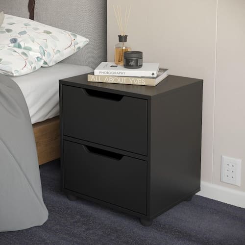 Mesa De Cabeceira Retro Prime Com 2 Gavetas Pés Anti Umidade Cor: preto