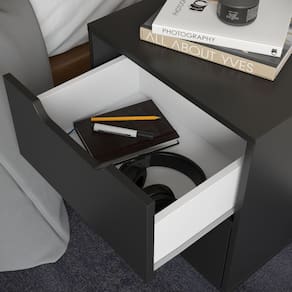 Observações: - produto em mdp; - pés estilo palito feitos em madeira maciça; - prático e leve; - 2 gaveta - gaveta com corrediças metálicas