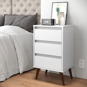 Ela dispõe de 3 amplas gavetas, ideais para armazenar pertences pessoais. Também conta com tampo, perfeito para acomodar itens decorativos e de uso diário, como: celular, despertador, livros, porta-retrato, entre outros.