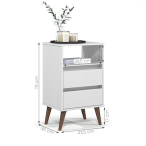 Esta mesa de cabeceira é o complemento perfeito para qualquer quarto, oferecendo um toque de elegância e funcionalidade. Com dois gavetas espaçosas, é ideal para armazenar seus pertences pessoais de forma organizada e discreta. Seu design compacto o torna uma adição versátil a qualquer decoração de quarto.