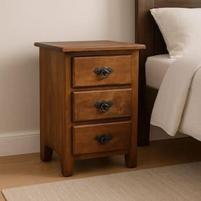 Mesa de Cabeceira Rústica de Madeira com 3 Gavetas 60cm de Altura