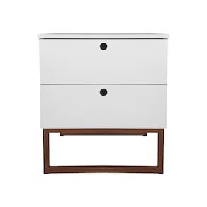 Mesa de Cabeceira Slim 2 Gavetas Branco Base Metálica Cobre - Vallisa Decor A Mesa de Cabeceira é um elemento indispensável para complementar o espaço ao lado da cama, oferecendo praticidade e elegância. Com espaço para itens essenciais como livros, óculos ou uma luminária, ele proporciona organização e conforto ao seu ambiente de descanso. Além disso, sua superfície é perfeita para decorar com objetos que expressem sua personalidade, adicionando um toque especial ao seu quarto. Dimensões: - Altura: 61cm; - Largura: 50cm; - Profundidade: 34,5cm; - Altura Base: 20,5cm; - Largura Base: 48cm; Medidas da Gaveta: - Altura Gaveta Interna: 15cm; - Largura Gaveta Interna: 41cm; - Profundidade Gaveta Interna: 32cm; Especificação do Produto: - Material: MDP BP; - Revestimento: Melanima BP; - Cor: Branco; - Pés: Aço Carbono 20x20 (Pintura Eletroestática); - Gaveta: 2 (Com puxador vazado); Necessita Montagem: Sim (acompanha manual). O produto é enviado desmontado, porém é de montagem fácil, os parafusos acompanham o produto e você vai precisar de uma parafusadeira; - Garantia: 3 meses contra defeitos de fabricação. Você irá receber: 01 volume. Observações Relevantes: - Instruções de Limpeza: Utilizar um pano limpo e levemente úmido, não utilizar produtos abrasivos, álcool ou qualquer outro produto químico; - Todos os produtos vão embalados com total segurança; - Produto para uso residencial em ambiente interno, não devendo ficar exposto diretamente ao sol, calor e umidades excessivas, não devendo ficar em área externa; - Pode haver alguma diferença de tonalidade entre a imagem e o produto real, por conta do tratamento de imagens e a calibração de cores do seu monitor; - Confira as dimensões do produto no momento da compra e certifique-se de que passará normalmente por escadas, elevadores, portas e corredores; - As imagens são meramente ilustrativas, não acompanham objetos de decoração; - Não nos responsabilizamos no ato da entrega por subir escadas/elevadores, montagens, desmontagens, instalações de produtos; - As orientações acima, evita-se futuros desagrados ou imprevistos com a entrega do produto; - Caso ocorra despesas adicionais, serão de responsabilidade do cliente.