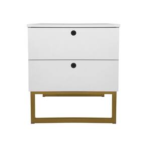Mesa de Cabeceira Slim 2 Gavetas Branco Base Metálica Dourada - Vallisa Decor