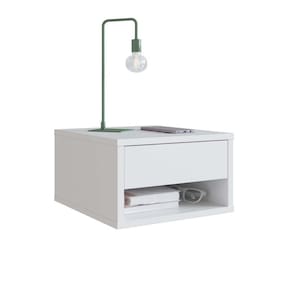 A mesa de cabeceira B87 é produzida em MDP 15mm, acabamento FF. Possui 1 nicho que suporta 2kgs e 1 gaveta com corrediças telescópica e que suporta até 5kg. Produto suporta até 12kgs. Conteúdo da embalagem: móvel, ferragens e manual de montagem. A fixação das peças e/ou acessórios é feita por parafusos, cavilhas e minifix. Necessita fixação na parede e parafusos de fixação estão inclusos. Para uma limpeza mais efetiva, utilizar apenas uma flanela seca. Não utilizar produtos abrasivos. Garantia de 03 meses contra defeitos de fabricação. Medidas do produto (AxLxP): 20x30x33,6cm. Peso do produto: 6,2kgs. Marca: Emovell