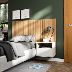 Cabeceira suspensa deve ser fixada na parede (já acompanha suporte e parafusos de fixação)