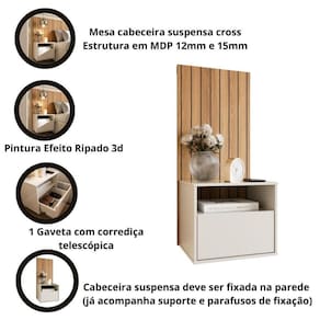 Mesa de Cabeceira Suspensa com Efeito Ripado Cross Freijó - Movelove
