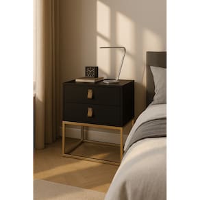 - Design Retrô Industrial: Combina linhas minimalistas com o toque rústico dos puxadores em couro natural e a base metálica em ferro.- Estrutura Resistente: Corpo em MDF/MDP de alta qualidade com pintura, garantindo elegância e durabilidade.- Puxadores em Couro: Dois puxadores em couro natural que proporcionam um acabamento sofisticado e luxuoso.- Base em Ferro: Estrutura robusta em ferro com pintura eletrostática, estilo geométrico aberto, oferecendo estabilidade e um visual leve.- 2 Gavetas Espaçosas: Ideal para organizar objetos pessoais, livros, acessórios ou itens do dia a dia, mantendo seu ambiente sempre em ordem.