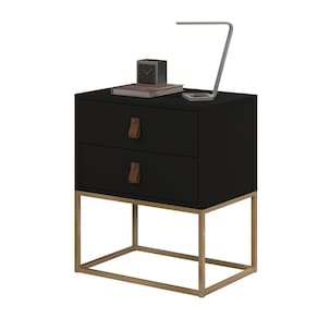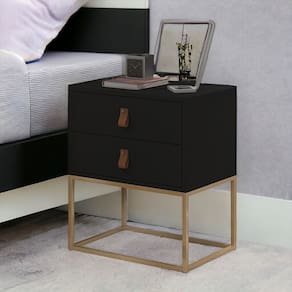 Mesa De Cabeceira Unic 45 Moderno Base Metalica Dourada - Preto
