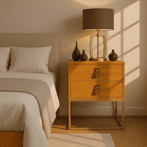 - Design Retrô Industrial: Combina linhas minimalistas com o toque rústico dos puxadores em couro natural e a base metálica em ferro.- Estrutura Resistente: Corpo em MDF/MDP de alta qualidade com pintura, garantindo elegância e durabilidade.- Puxadores em Couro: Dois puxadores em couro natural que proporcionam um acabamento sofisticado e luxuoso.- Base em Ferro: Estrutura robusta em ferro com pintura eletrostática, estilo geométrico aberto, oferecendo estabilidade e um visual leve.- 2 Gavetas Espaçosas: Ideal para organizar objetos pessoais, livros, acessórios ou itens do dia a dia, mantendo seu ambiente sempre em ordem.