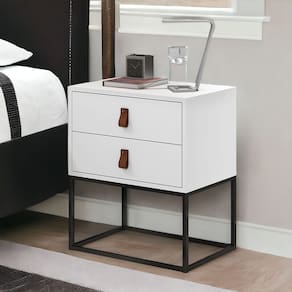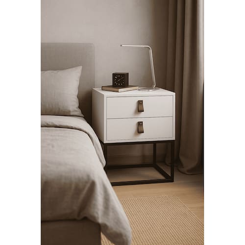 Mesa de Cabeceira UNIC 45 Transforme seu ambiente com esta mesa de cabeceira que une charme retrô, robustez e funcionalidade! Ideal para quartos, salas ou ambientes contemporâneos, seu design industrial destaca-se pela combinação de materiais e acabamentos de alta qualidade. Destaques do Produto: - Design Retrô Industrial: Combina linhas minimalistas com o toque rústico dos puxadores em couro natural e a base metálica em ferro.- Estrutura Resistente: Corpo em MDF/MDP de alta qualidade com pintura, garantindo elegância e durabilidade.- Puxadores em Couro: Dois puxadores em couro natural que proporcionam um acabamento sofisticado e luxuoso.- Base em Ferro: Estrutura robusta em ferro com pintura eletrostática, estilo geométrico aberto, oferecendo estabilidade e um visual leve.- 2 Gavetas Espaçosas: Ideal para organizar objetos pessoais, livros, acessórios ou itens do dia a dia, mantendo seu ambiente sempre em ordem. Especificações Técnicas: