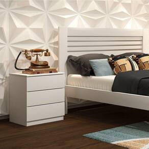 Mesa De Cabeceira Veronna 3 Gavetas Tcil Neve Criado Veronna 3 Gavetas Tcil Mantenha aqueles itens pessoais mais importantes sempre ao seu alcance e em um lugar fácil de encontrar. Ao lado da sua cama, a Mesa de Cabeceira Veronna irá ajudar na organização do ambiente já que as 3 gavetas armazenam pequenos objetos, como o carregador do celular, fones de ouvido ou documentos, enquanto o tampo serve de apoio para uma luminária, aquele livro da vez ou seu celular - vai de você como usá-la da melhor forma. O design clássico super charmoso completa o combo desse móvel de bom gosto que promete deixar seu cantinho ainda mais aconchegante. Especificações: Altura: 58 cm Largura: 45 cm Profundidade: 45 cm Peso: 14 kg Possui Gavetas: 03 Possui Prateleiras: Não Possui Pés: Não Tipo de Corrediça: Telescópica Material Principal: mdf Necessita de Montagem: Sim Complexidade da Montagem: Baixa