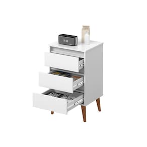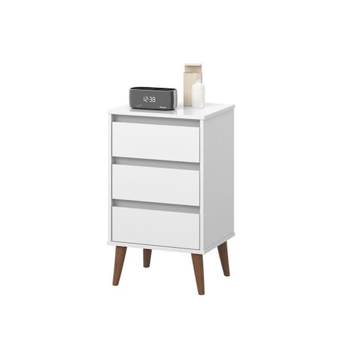 Ficha técnica - Cor principal: Branco - Altura: 71 cm - Com portas: Não - Com alça: Não - Com corrediças: Sim - Com rodas: Não - Tipo da mesa de cabeceira: Com pés - Acabamento: Brilhante - Material da mesa de cabeceira: Alfarrobeira - Requere montagem: Sim - Com bandeja removível: Não - Quantidade de mesas de cabeceira: 1 - Com prateleiras: Sim - Quantidade de gavetas: 3 - Material das corrediças: Alumínio - Com gavetas: Sim - Inclui ferramentas de montagem: Não - Profundidade: 36 cm