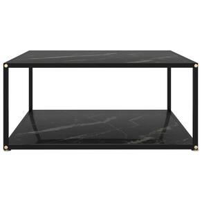 Esta mesa de café prática, com um design de 2 camadas, adiciona um toque de estilo contemporâneo à decoração da sua casa. Feita de vidro temperado e aço com revestimento em pó, a mesa é forte e durável. A mesa sólida fornece uma superfície segura para colocar lanches, bebidas, vasos, tigelas de frutas ou outros ornamentos. Esta mesa de destaque pode manter sua sala de estar livre de bagunça graças à sua prateleira de armazenamento. É perfeito para colocar livros, revistas ou pequenos itens que você gostaria de manter ao seu alcance. Além disso, é fácil de limpar com um pano úmido. Relaxe e divirta-se entretendo sua família e amigos em torno desta mesa de acentos exclusiva! Cor: preto Material: vidro temperado, aço revestido a pó Dimensões: 80 x 80 x 35 cm (C x L x A) Espessura do vidro: 5 mm Possui 2 camadas Com textura de mármore Montagem necessária: Sim