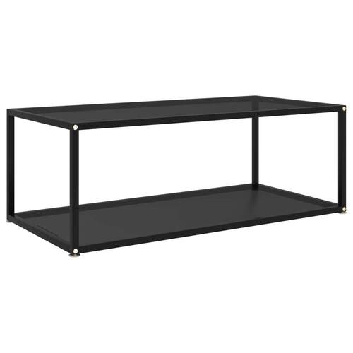 Mesa de café retangular vidaXL — Mesa de vidro temperado preto, estrutura de aço, design de duas camadas — Mobiliário de sala de estar moderno decorativo e funcional