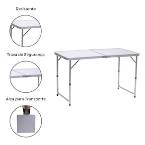 Descrições Técnicas da Mesa Dobrável Portátil Vira Maleta 120x60cm: