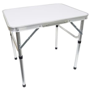 Uma mesa super prática e fácil de montar e desmontar em qualquer lugar, sendo facilmente transportada no Carro ou até mesmo a pé, pesando apenas 2,5 Kg. Mesa em cor Branco e Cinza mesclado na tampa e estrutura em Alumínio, com duas alturas podendo ser usada em vários ambientes ou ocasiões conforme a necessidade para o uso, super versátil e prática, resistente e alta durabilidade, sendo um ótimo investimento de custo-benefício.