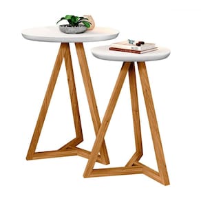 O(a) Mesa de Canto Classic Kit 2 Peças Branco/Nature - Tebarrot é produzido em MDF e Pinus na escala de brilho Semi-Brilho, e possui um grau de dificuldade de montagem: Médio.