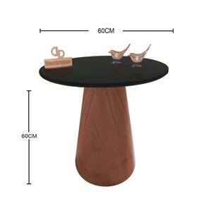 Mesa de Canto com Vidro 60cm e Base cone envernizada para decoração de ambiente