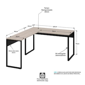 - A saia possui 20cm de altura garantindo ótima estabilidade a mesa Produto Montado: Sim Acompanha Manual de Instalação: Sim Ambiente Principal: Escritório codigo_ean: 7798442417892 Complexidade da Montagem: Baixa: pode ser montado por uma pessoa sozinha Cor: Carvalho Cor do Produto: Carvalho Cor Interna: Carvalho Dobrável: Não Escala de Brilho: Semi-Brilho Espessura do Tampo: 30 mm Formato: Em L Itens Inclusos: 1 Escrivaninha, Manual de Montagem e Kit Ferragens Linha ou Coleção: Office Manual de Montagem e Instalação: https://product-hub-prd.madeiramadeira.com.br/866871/documents/7d3dbe4a-1fd5-4cb0-8295-1b89ed7a506f807mesaangularpEretangular.pdf Material da Estrutura: Aço Material do Tampo: MDP Material dos Pés: Aço Material Principal: MDP Montagem Flex: Não Necessita Montagem: Sim Origem do Produto: Nacional Pés com Regulagem de Altura: Não Pés Reguláveis: Não Peso: 28 kg Possui Painel: Não Possui Passa Cabos: Não Possui Porta Objetos: Não Possui Portas: Não Possui Prateleiras: Não Possui suporte para CPU: Não Possui Suporte para Teclado: Não Possui Vidro: Não Recomendações de Uso, Manutenção e Limpeza: Limpeza com pano úmido, sem produtos químicos Sapatas Niveladoras: Sim Sistema de Montagem: Parafusos, cavilha e minifix Suporta Até (kg): 85 kg