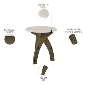 O tampo redondo desta Mesa de Apoio é produzido em MDF de 25mm, oferecendo estrutura sólida e acabamento refinado. Seu formato suave contribui para um visual limpo e agradável.