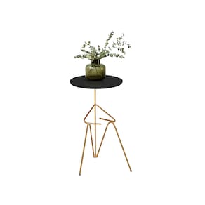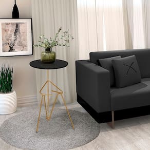 Mesa De Canto Lateral Mesinha Bambino Dourado com Tampo Preto
